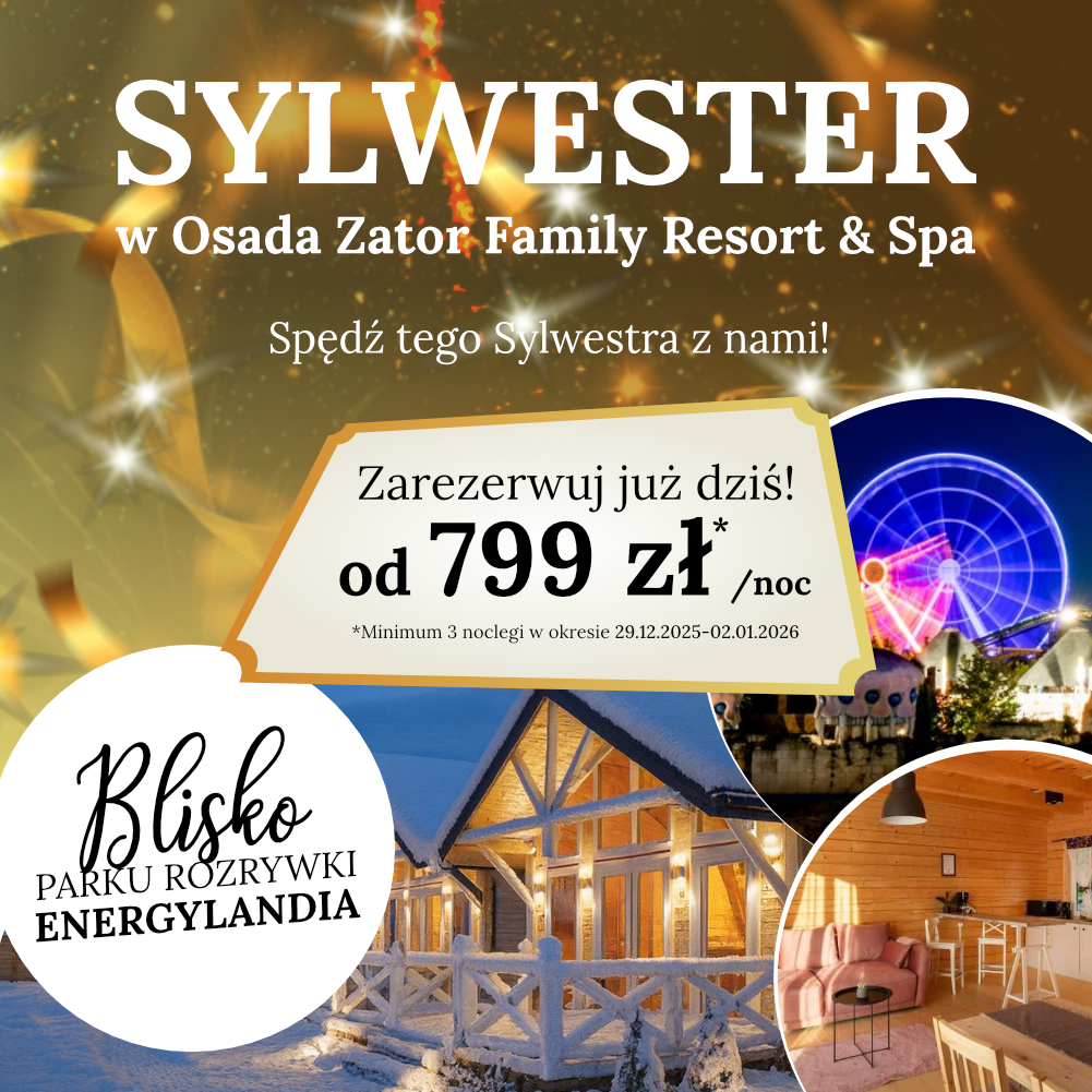 Spędź niezapomniane chwile w przytulnych domkach Osada Zator Family i rozpocznij 2026 rok w magicznym otoczeniu.
